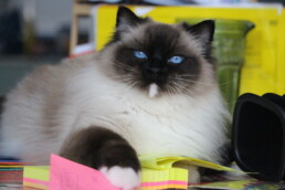 Nous attendons des chatons merveilleux, au pils bien fourni, des yeux profond, en point mitted ou bicolore, en Seal, Chocolat, Blue et Lilac.