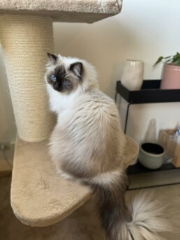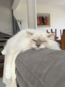 Ma chérie au chocolat, ma Sekhmet des Topaz’ Catelina au caractère en or, une poulette collante qui est comme mon ombre. Partout où je vais elle est, à la recherche de câlins ou de jeu ! C’est une copine de jeu pour petit ou grand ! Mais surtout la plus maladroite de toutes : entre glissades imprévues, et les sauts en longueur mal calculés, cette beauté n’a pas fini de nous surprendre !