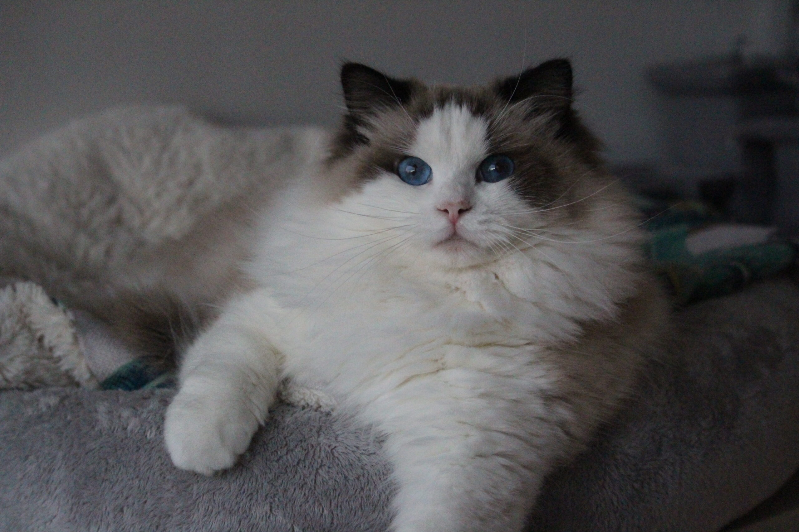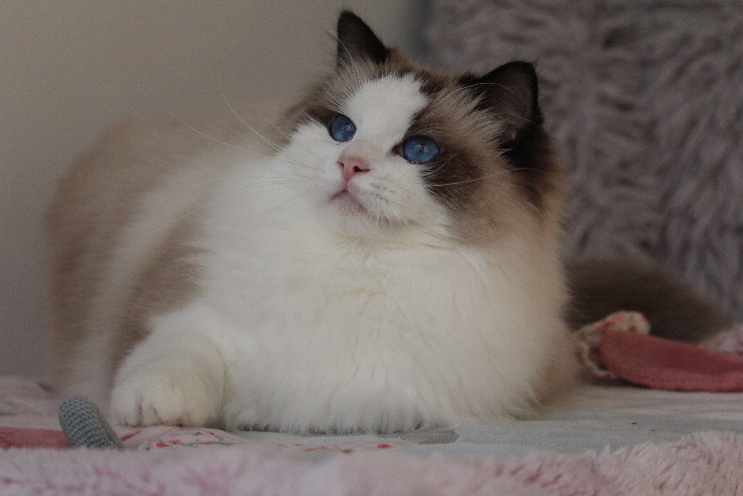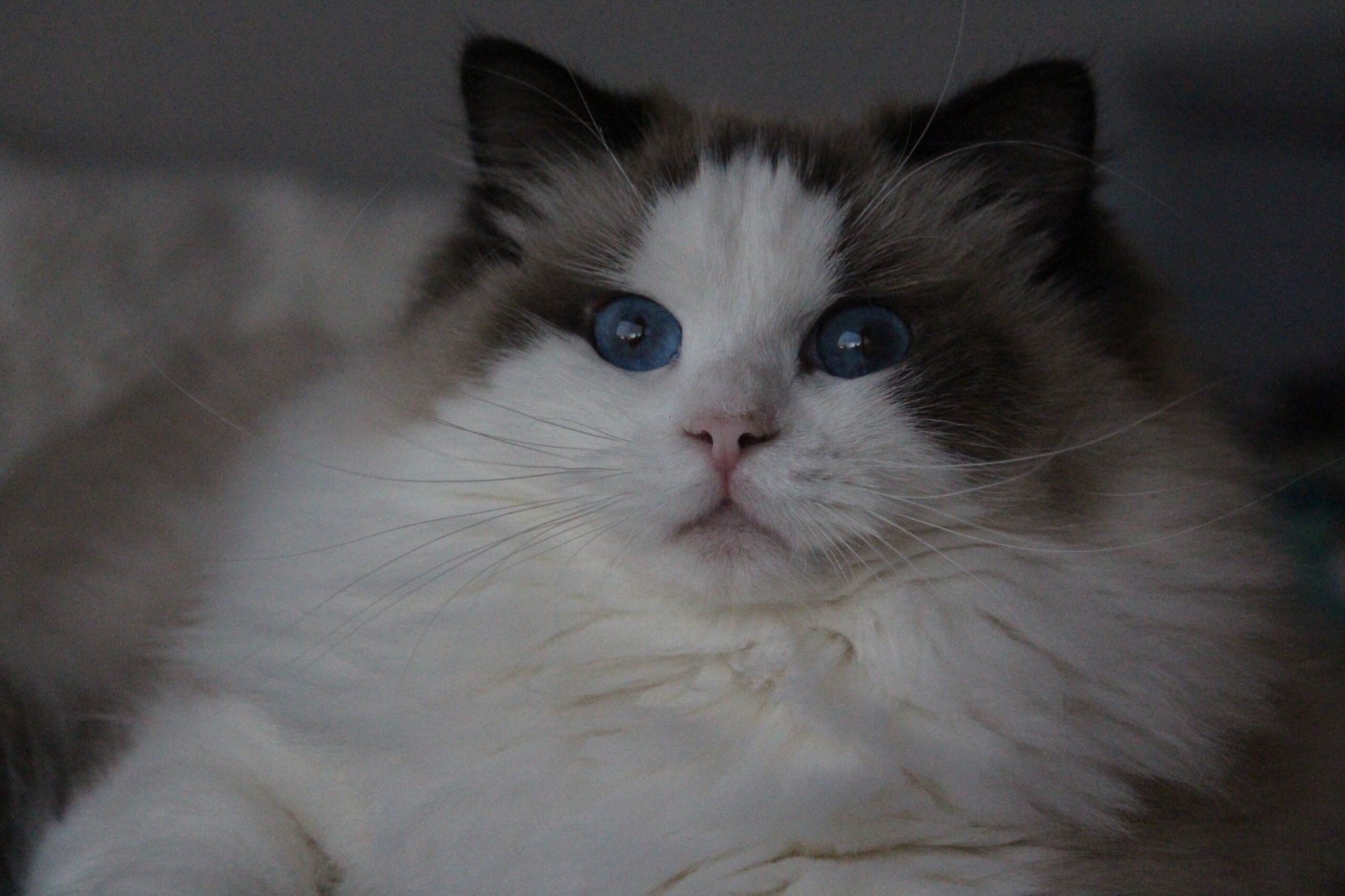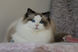 Harley à un marquage sublime, des yeux d’un bleu si profond que l’on s’y noie, un pelage juste magnifique, et des moustache impressionnante, bref, tout ce que l’on attend d’un Ragdoll pour nous faire craquer !