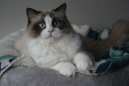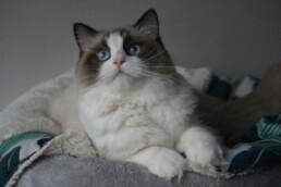 Notre garçon est un grand Ragdoll, une bonne ossature, beaucoup de force et une douceur et un relachement dans nos bras : un petit bohneur ! En plus de cela, Ymir est porteur de chocolat et de dilution grace à son papa Uderzo – Merci encore une fois à notre amie Virginie de La chatterie du Château Blanc !